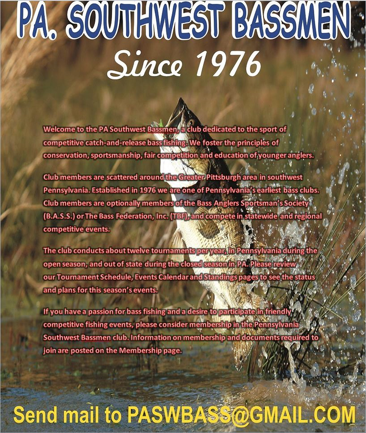 Pa Southwest Bassmen Established in 1976 we are one of Pennsylvania’s oldest clubs Send mail to